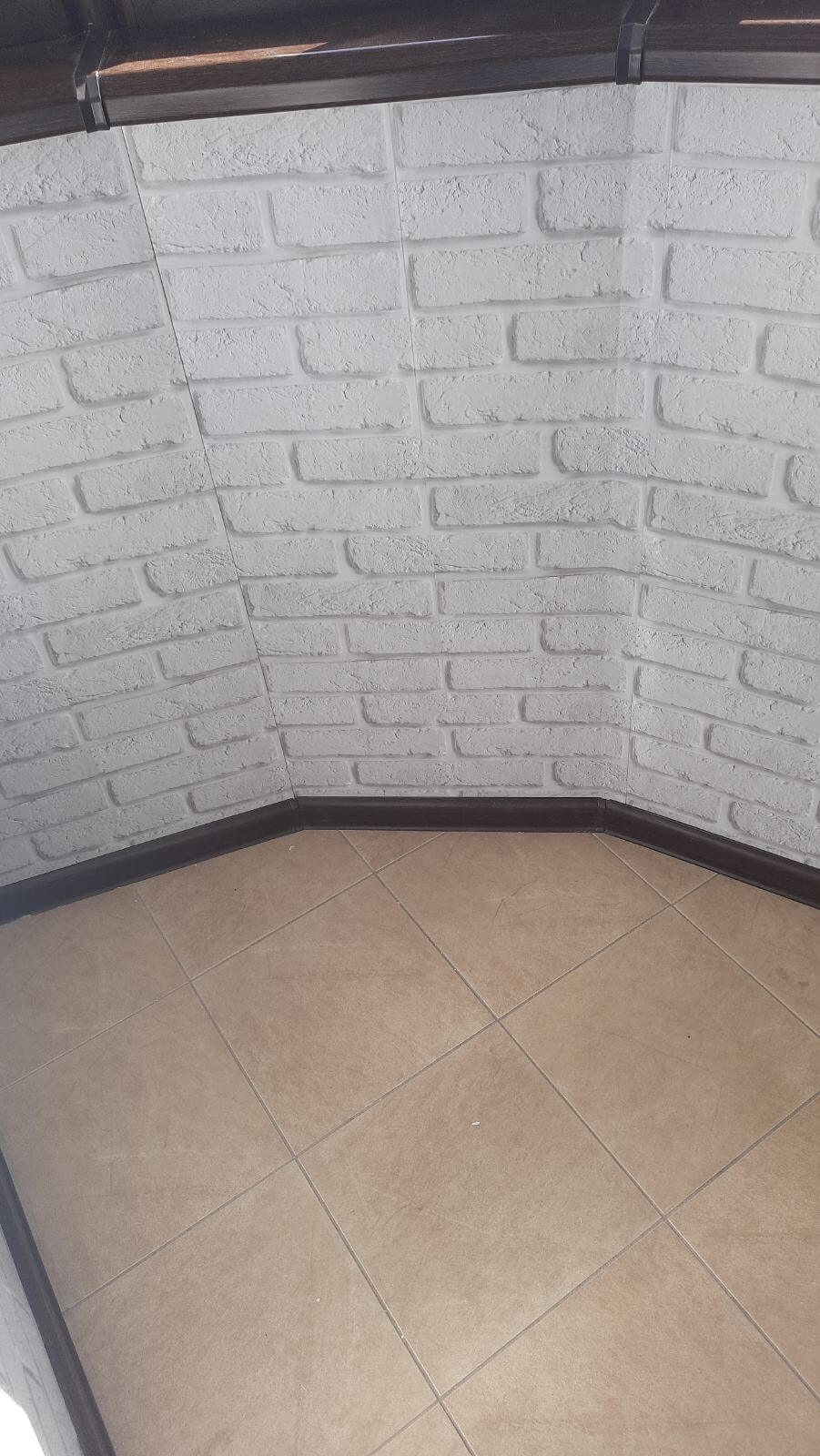 - Стены обшиты ПВХ панелями цвет - "Кирпич".