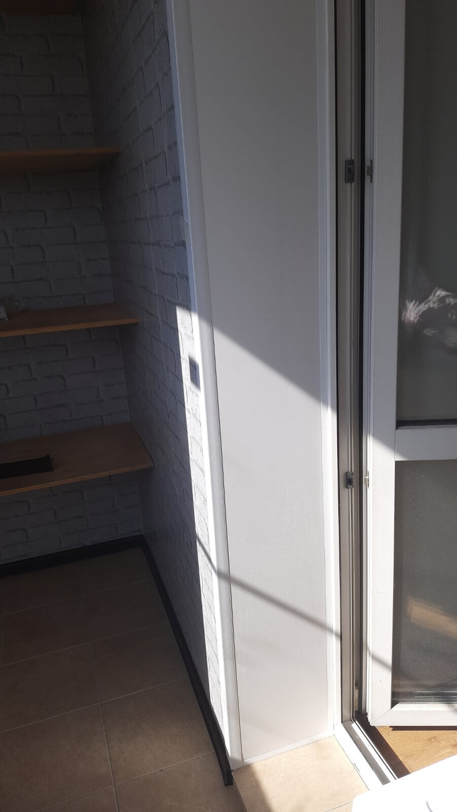 - Откосы на балконном блоке обшиты сэндвич панелью белого цвета.
