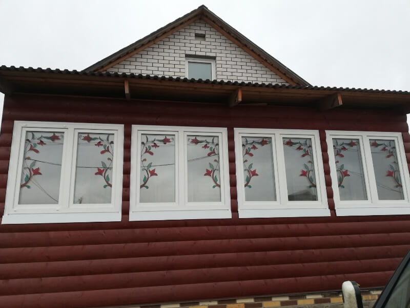 - Установлено 3 пластиковых окна с витражными рисунками по эскизам заказчика.